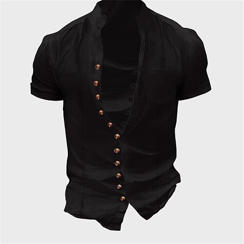 Per uomo Camicia Camicia di lino Camicia popover Camicia casual Camicia di cotone Semplice Vacanza Streetwear Bianco Blu marino Azzurro cielo Verde Manica Corta Colletto alla coreana Estate