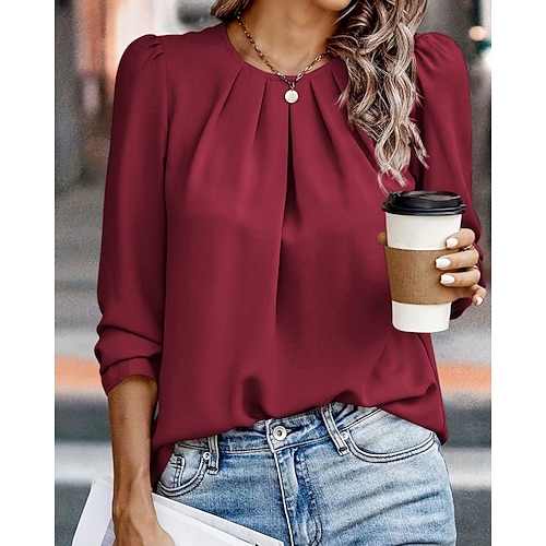 Per donna Camicia Blusa Semplice Attivo Casual Manica Lunga Girocollo Top Regolari Quotidiano Ferie Uscire Arricciato Nero Vino Verde militare Azzurro cielo Verde Estate Primavera
