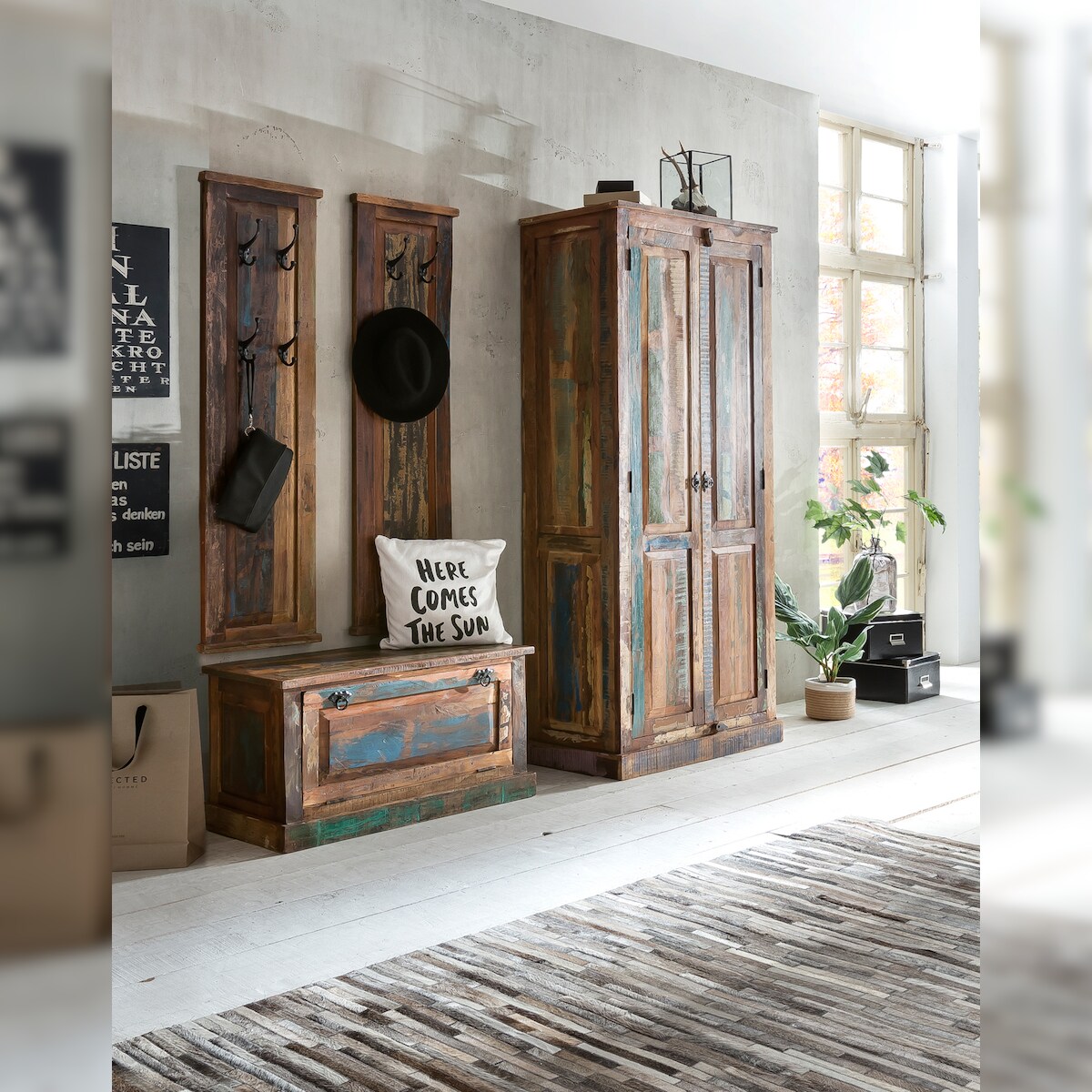 SIT Möbel Dielen-Set | 4-tlg. | Altholz lackiert bunt | 1 Schuhschrank, 2 Paneele, 1 Kleiderschrank | B85xT45xH180 cm | 18000-62 | Serie RIVERBOAT