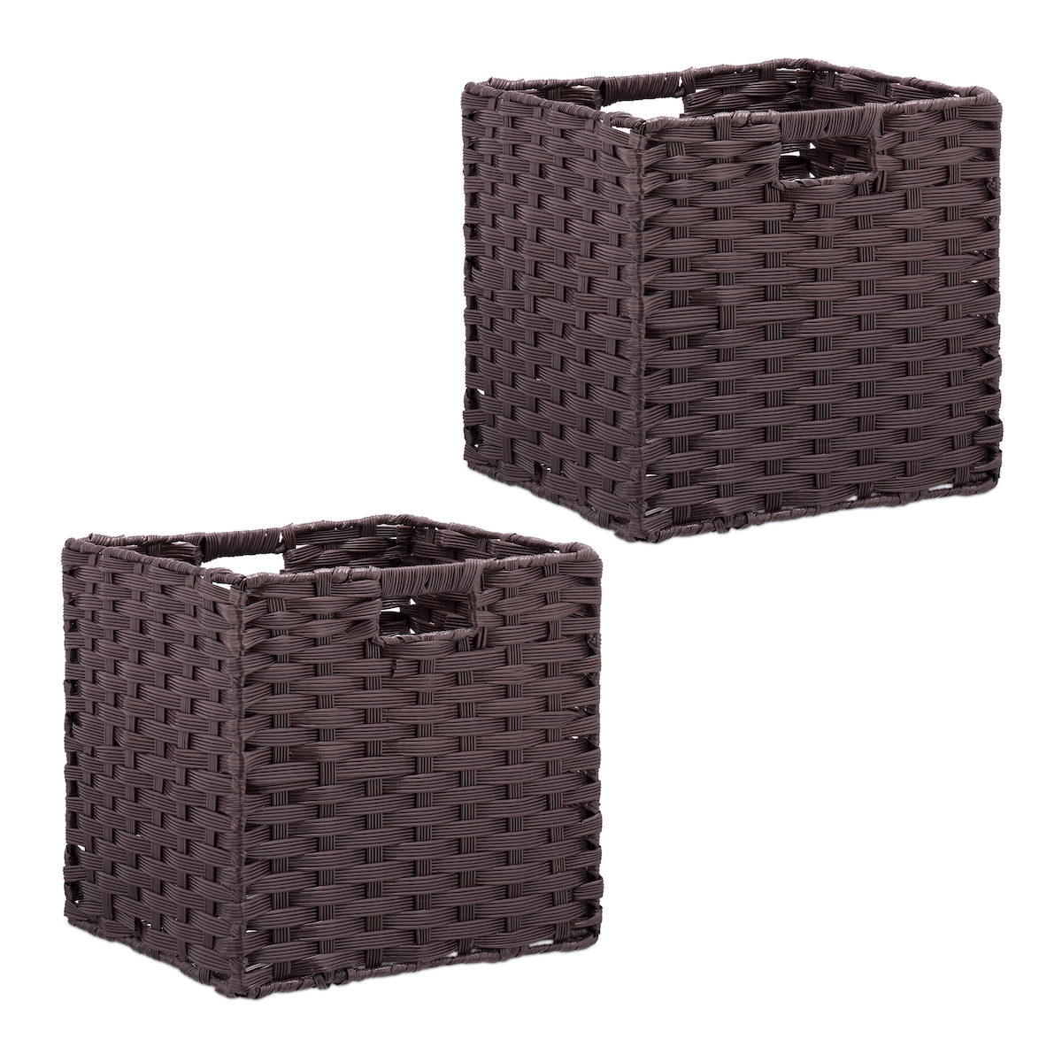Relaxdays Aufbewahrungskorb, 2er Set, geflochten, Kleidung, Spielzeug, HBT: 31 x 32 x 30 cm, Kunststoff Regalkorb, braun
