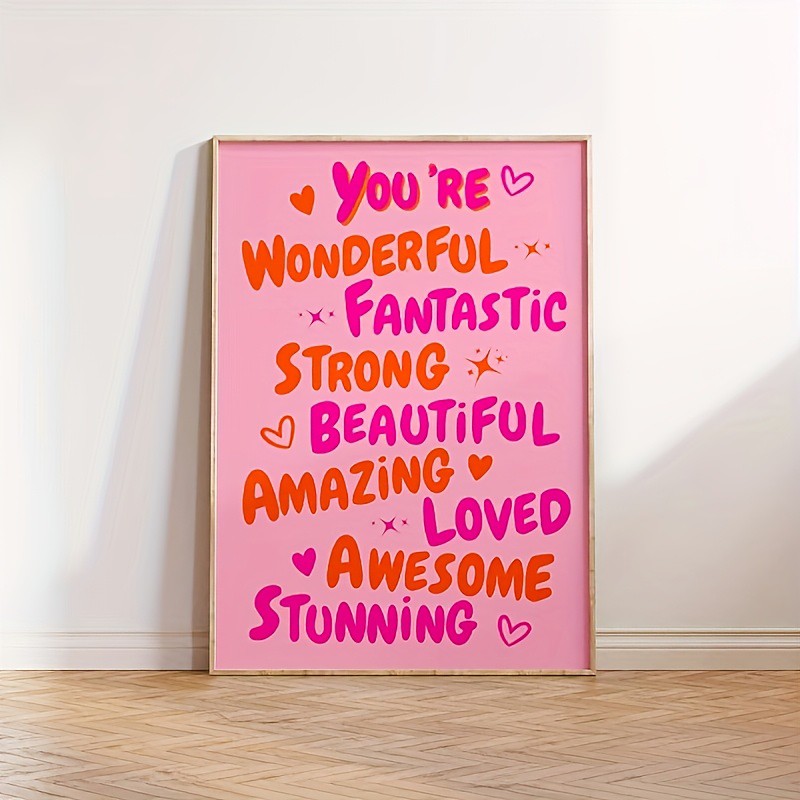 You Are Amazing Pink and Orange Poster - Funky 70s Retro Wall Art Trendy Printable Canvas for Dorm Room Decor Preppy Style Frameless Vertical Letter Print Artwork for Bedroom Living Room