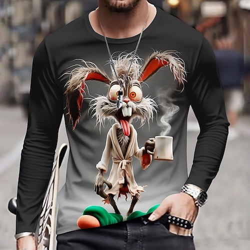 Ostern Herren Cartoon Kaninchen Lustiger Slang T Shirt Kurzarm T-Shirt 3D-Druck Rundhalsausschnitt Hemd Mode Täglich Lässig Straße Lässig Täglich Schwarz Blau Grün Sommer Frühling Bekleidung S M L XL