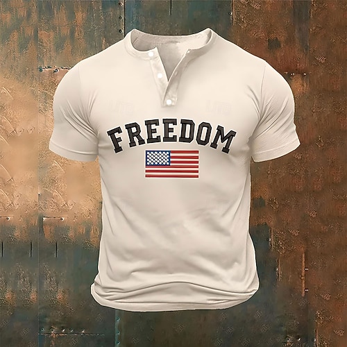 Herren Buchstabe Amerikanische Flagge Kurzarmshirt T-Shirt Kurzarm T-Shirt 3D-Druck Henley Hemd Mode Designer Lässig Urlaub Täglich Ferien Weiß Khaki Ganzjahres Bekleidung S M L XL 2XL 3XL 4XL