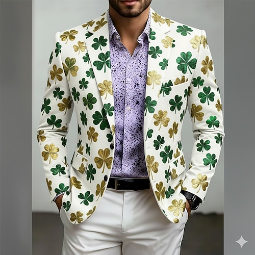 St. Patrick Herren Kleeblatt Blazerjacke Mantel Mode Bequem Atmungsaktiv Künstlerisch Lässig Täglich Party-Abendmode Lässig 3D-Druck Knöpfe Mehrere Taschen Frühling Herbst Winter Fallendes Revers