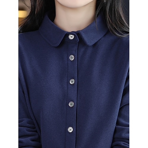 Per donna Blusa Tinta unica Elegante Casual Manica Lunga Colletto a Camicia Top Regolari Quotidiano Patchwork Nero Blu Verde Cachi Grigio Primavera Autunno Inverno