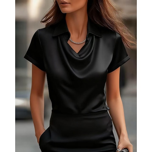 Per donna Camicie ispirate al lino Blusa Semplice Quotidiano Elegante Essenziale Manica Corta Girocollo Top Regolari Lavoro Quotidiano Ferie Volant Nero Bianco Grigio Estate