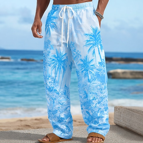 Per uomo Albero di Cocco Colore sfumato Piante Tropicali Pantaloni Pantaloni casual Pantaloni Larghi Misura del girovita medio Hawaiano All'aperto Vacanza Abbigliamento mare Coulisse Coulisse