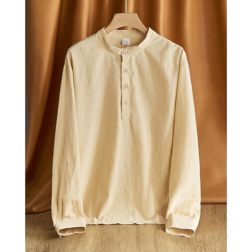 Per uomo Camicia Camicia di lino Camicia popover Camicia casual Camicia di cotone Semplice Vacanza Camicia hawaiana Nero Bianco Cachi Verde militare Manica Lunga Colletto alla coreana Primavera