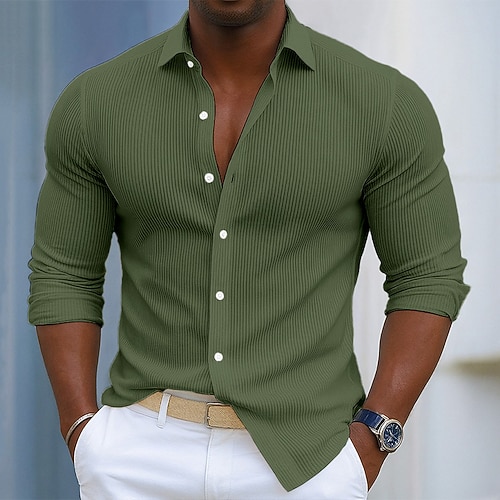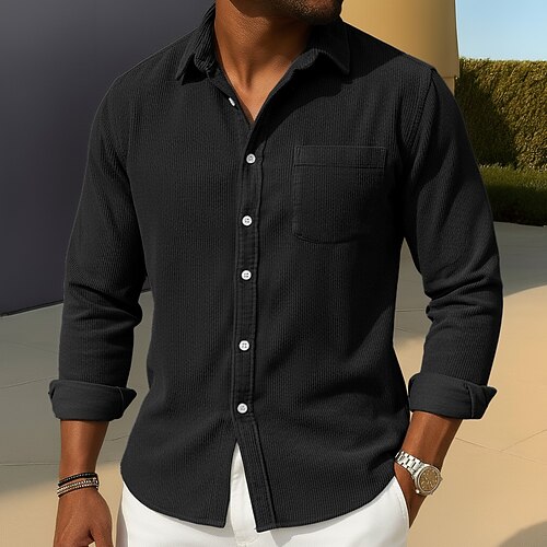 Per uomo Camicia Camicia di Velluto a Coste Camicia con Bottoni Nero Bianco Blu marino Blu Viola Manica Lunga Semplice Collo ripiegato All'aperto Vacanza Bottonato Abbigliamento Cotone Moda