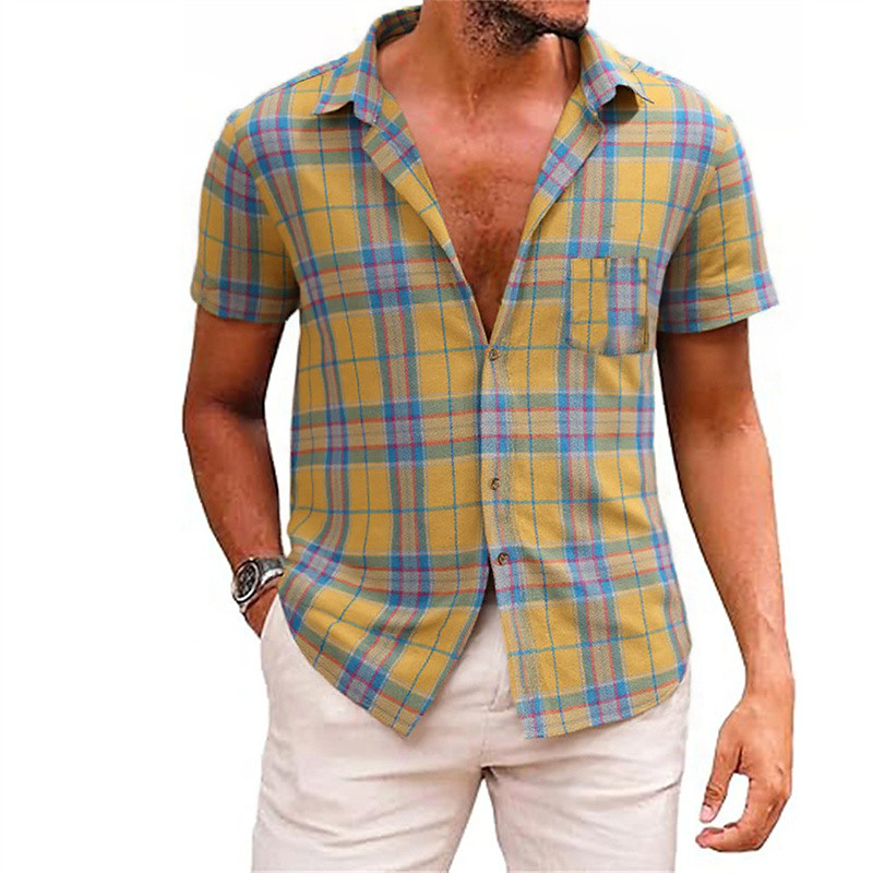 Men's Shirt Summer Shirt Casual Shirt Beach Shirt Button Up Shirt Yellow Red Blue Short Sleeve Plaid Lapel Vacation Hawaiian Pocket Clothing Apparel Fashion Casual Comfortable
