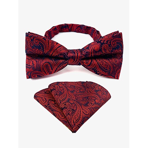 set papillon e fazzoletto da taschino natalizio da uomo - plaid rosso con motivo a fiocco di neve, perfetto per feste e occasioni festive