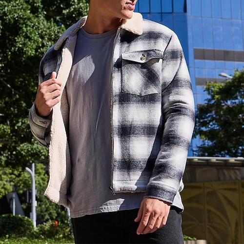 Per uomo Cappotto Invernale Giacca in Pile Giacca Casual Casuale Quotidiano Calore Termico Tasca Cerniera completa Autunno Inverno Autunno Inverno Plaid Streetwear Quotidiano Collo ripiegato