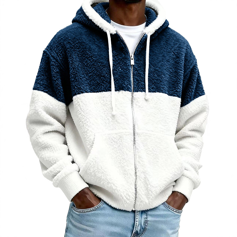 Men's Hoodie Full Zip Hoodie Fleece Hoodie Fleece lined Hoodie Black Light Green Red Navy Blue Dark Green Hooded Color Block Plain Patchwork Color Block Sports Outdoor Casual Daily Streetwear Cool