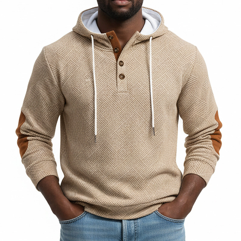 Men's Jacquard Hoodie Pullover Button Up Hoodie White Brown Khaki Light Grey Hooded Plain Patchwork Color Block Textured Casual Daily Sports Outdoor Streetwear Cool Sportswear Spring Fall