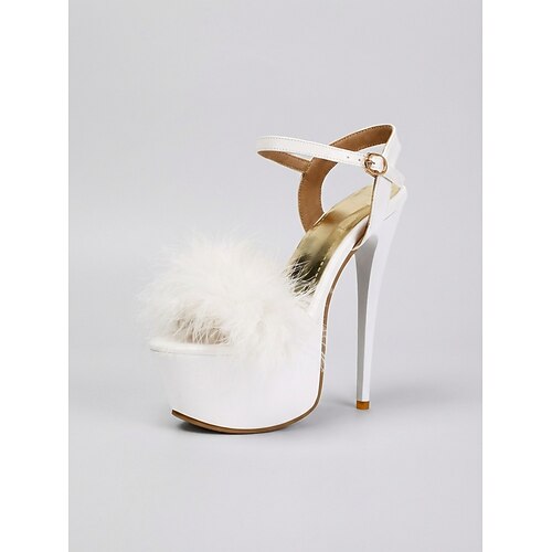 Sandali da donna bianchi con plateau e tacco alto e cinturino in pelliccia, scarpe sexy con tacco a spillo per feste, vita notturna e club. look da sera di grande effetto