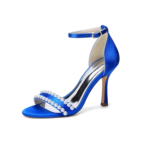 sandali da donna con tacco alto e cinturino alla caviglia in perle argentate, eleganti scarpe da sposa per matrimoni in città