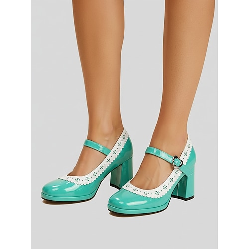scarpe con tacco alto e plateau bianche da donna, classiche décolleté con punta tonda e tacchi a blocco spessi, eleganti scarpe in vernice per le feste di Natale abiti invernali