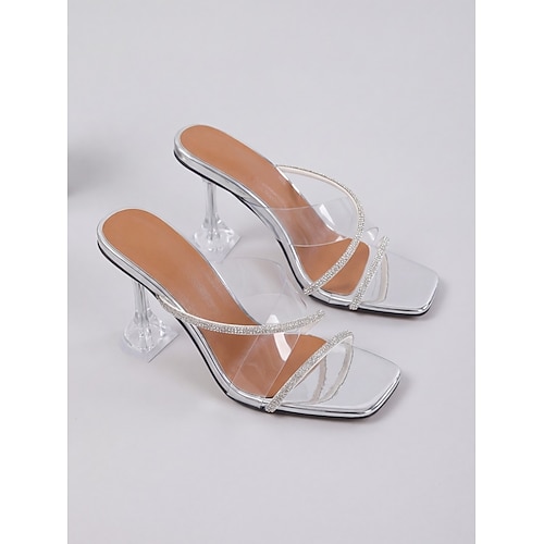 Sandali da donna trasparenti con tacco alto, scarpe eleganti trasparenti con punta aperta e cinturino in strass per cocktail party ed eventi serali serata fuori