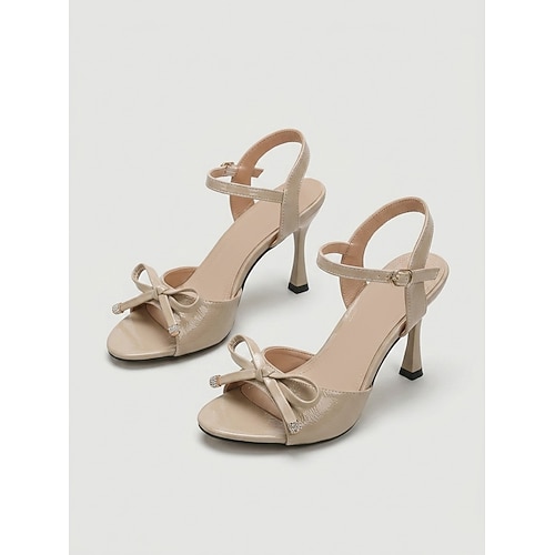 Sandali da donna rosa con tacco alto e punta aperta, decorati con fiocco, eleganti scarpe da invitata per matrimoni in giardino. eventi all'aperto