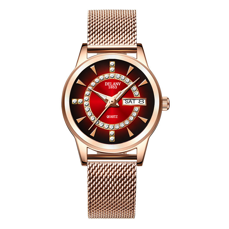 The New Ladies' Alloy Mesh Strap Fashion Watch With Ipx7 Water Resistance Dual Calendar Luminous Casual Quartz Watch Light Luxury And Versatile Elegant Ladies' Wristwatch