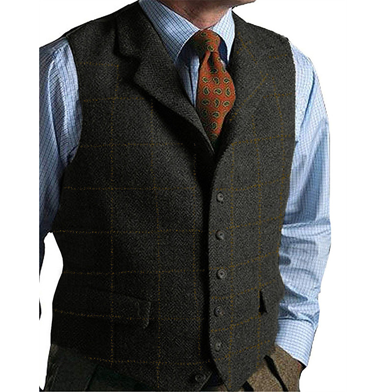 Men's Vest Gilet Suede Vest Vacation Daily Date Fashion Casual Spring Fall Buttons Pocket Polyester Comfortable Plaid Single Breasted One-button Lapel Regular Fit Dark Brown Black Navy Blue Green