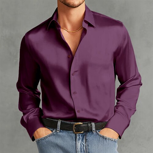 Per uomo Camicia Come la seta Camicia in raso Camicia elegante Camicia con Bottoni Semplice Formale Matrimonio Blu chiaro Nero Bianco Vino Manica Lunga Bavero Primavera Autunno Tutte le stagioni