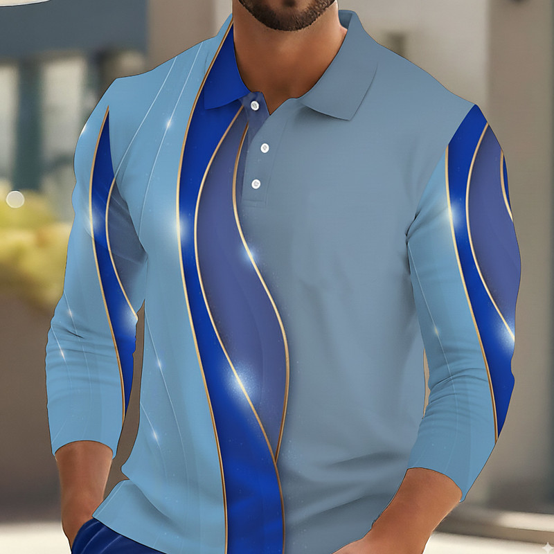 Men's Abstract Geometic Polo Long Sleeve Polo Shirts Lapel Casual Outdoor Athleisure Daily Wear 3D Print Buttons Spring Fall Winter Blue Brown Green