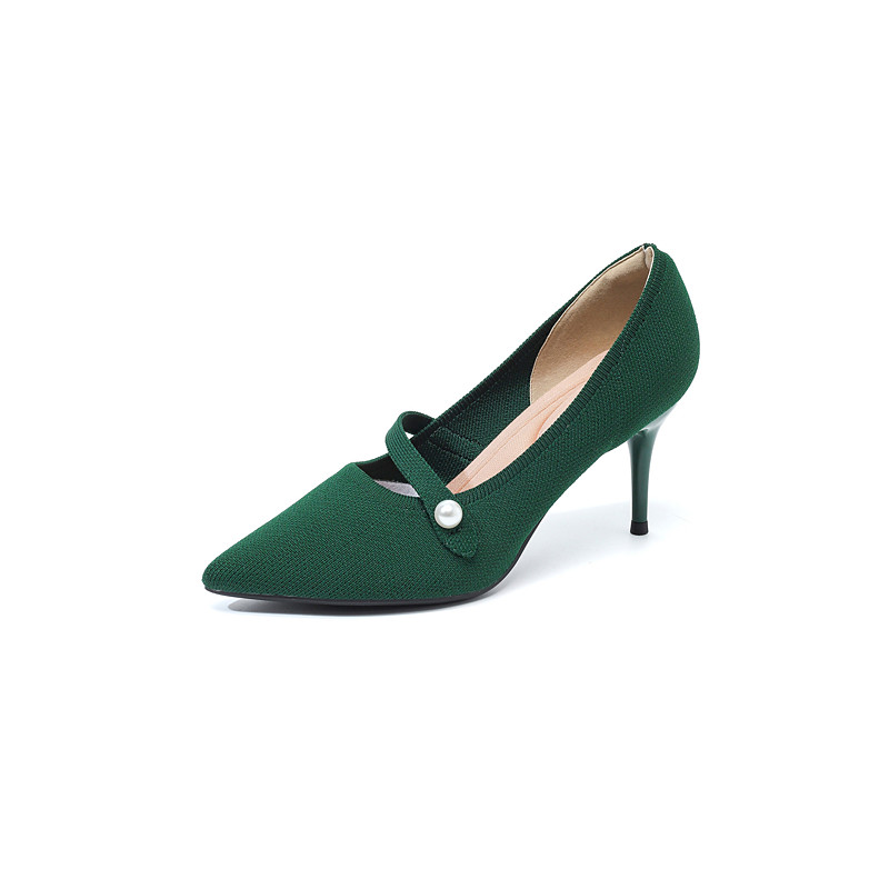 Women's Burgundy Pointed Toe Knit Pumps with Pearl Strap Accent – Comfortable High Stiletto Heels for Daily Commuting, Office Wear Elegant Professional Ladies
