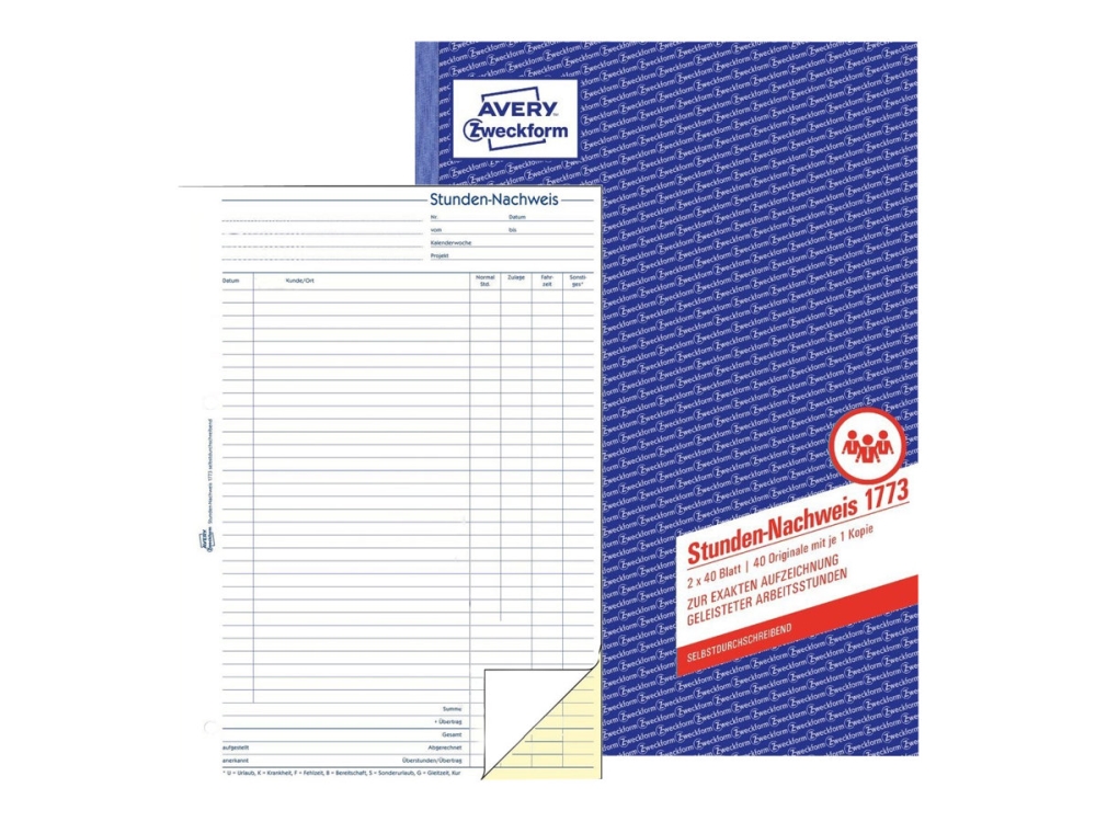 Avery Zweckform - Timebaseret tidsark - 40 ark - A4 (210 x 297 mm) - duplikat - karbonfri