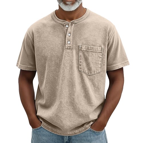 Per uomo Maglia Henley Camicia 100% cotone lavaggio acido Maglietta Manica Corta Retrò Vintage Casual Cardigan con Bottoni Tasca Lavato Henley Casuale Estate Primavera Autunno Marrone scuro Nero Rosa