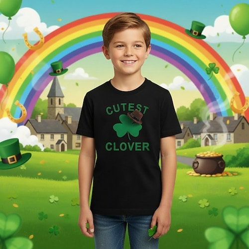 100% Cotone Giorno di San Patrizio Bambini Ragazzi Blu Nero Bianco Grafico Trifoglio Giorno di San Patrizio Maglietta Blusa Girocollo Manica Corta All'aperto Abbigliamento Quotidiano Moda Streetwear