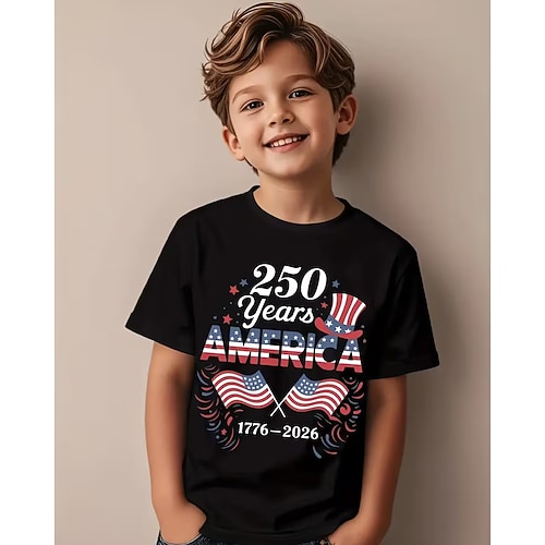 100% Cotone Bambini Ragazzi Nero Grafico Bandiera USA 250° anniversario Maglietta Blusa Girocollo Manica Corta All'aperto Abbigliamento Quotidiano Moda Streetwear Designer Stampa Tutte le stagioni