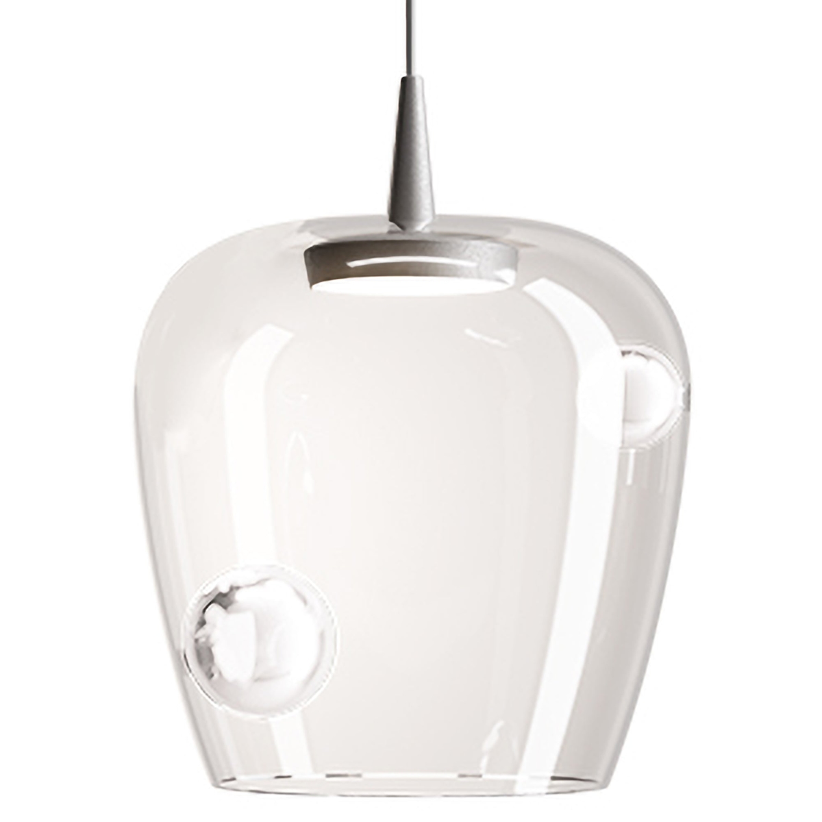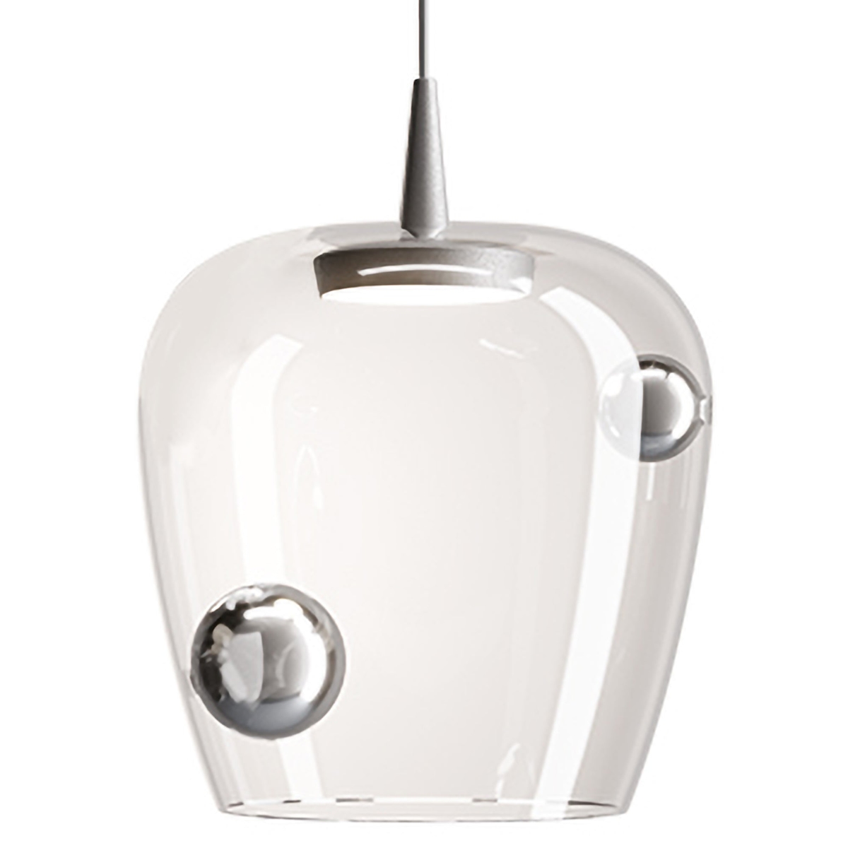 Zafferano Bilia 27 cm Pendelleuchte aus mundgeblasenem Glas und silberfarbenem Aluminium, 8W dimmbare TRIAC-LED-Lichtquelle, Gesamthöhe 333 cm