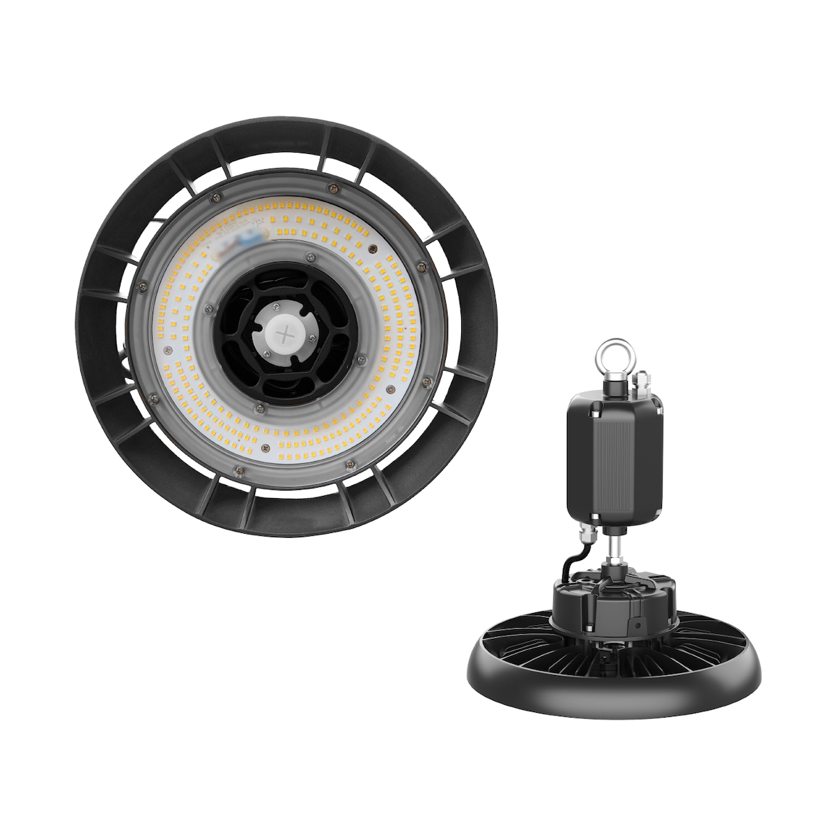 Alcapower LED-Hallenstrahler UFO 100W 15000lm 4000K IP65 IK08, integrierte Notlichtfunktion 180 Min., hohe Lichtausbeute für Industrieumgebungen.