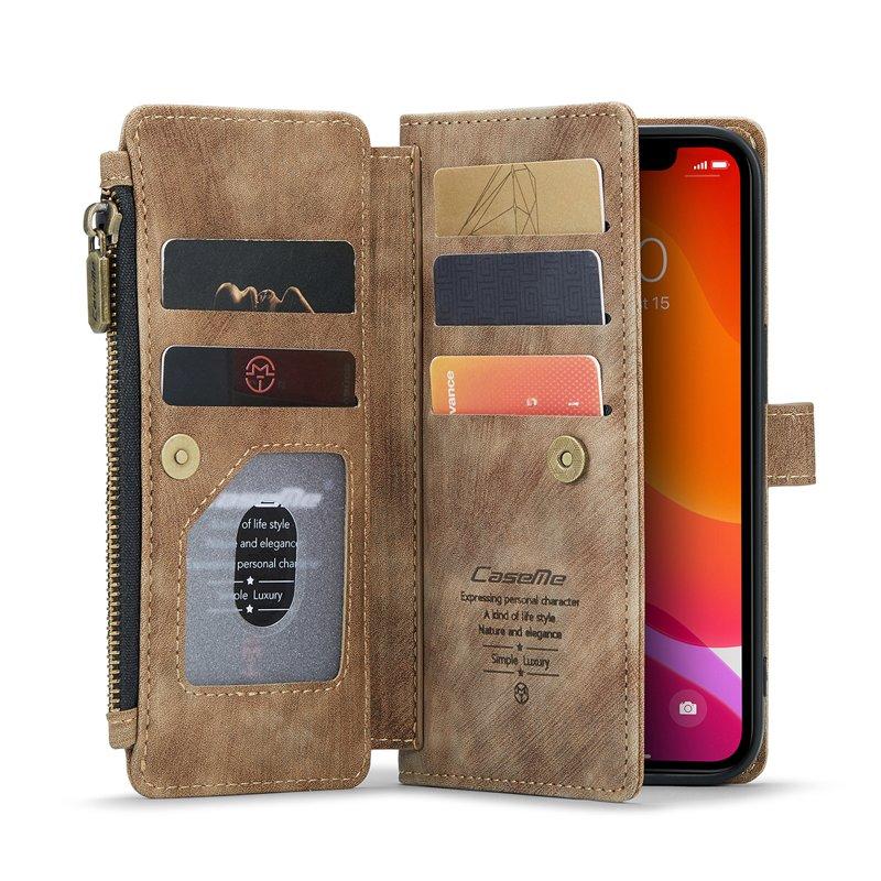 CASEME Konstläder Plånboksfodral för iPhone 12/12 Pro med rem - Brun