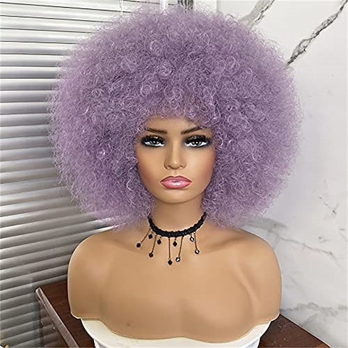 70er Afro Perücken für schwarze Frauen - große Afro Puff Perücke mit Pony kurzes lockiges Kunsthaar für Frauen