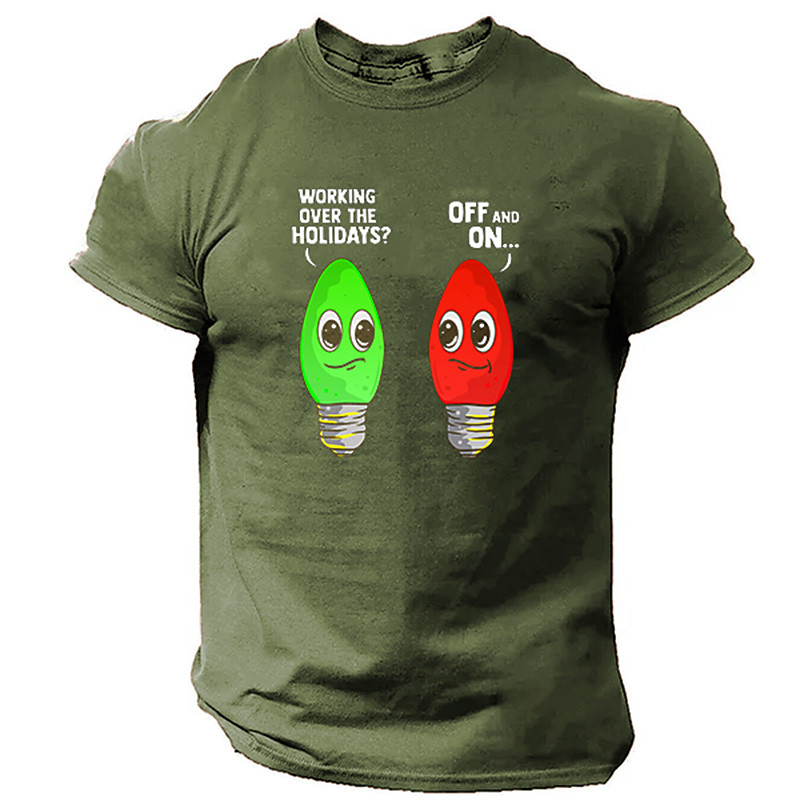 Men's Short Sleeve Graphic T-Shirt, Funny Holiday Work 'Off and On' Light Bulb Pun