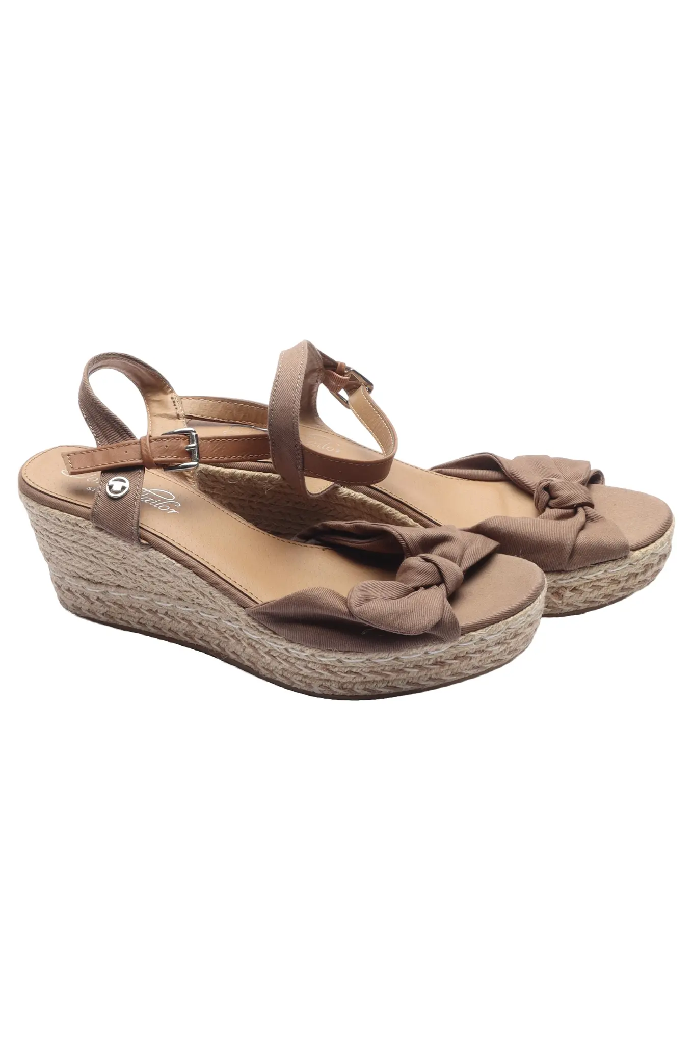 TOM TAILOR Sandalen Damen Gr. 42 Braun Keilabsatz Schleife