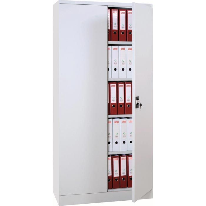 PROREGAL Flügeltürenschrank Badger | 4 Fachböden | Eurolock Griff Sockel | HxBxT 195x92x42 cm | Grau | Lackiert