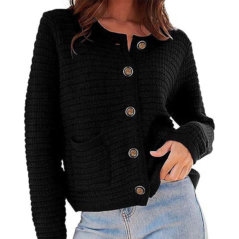 Women's Sweater Cardigan Streetwear Casual Pure Color Crew Neck Buttons Knitted Long Sleeve Regular Tops Knit Holiday Going out Weekend Black Pink Fall Winter