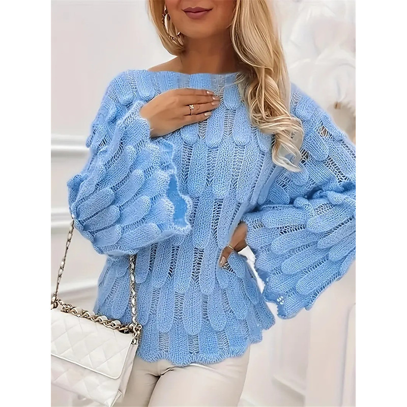 Women's Sweater Elegant Casual Soft Pure Color Ribbed Crew Neck Layered Knitted Long Sleeve Regular Tops Knit Daily Outdoor Weekend Blue Black Fall Winter