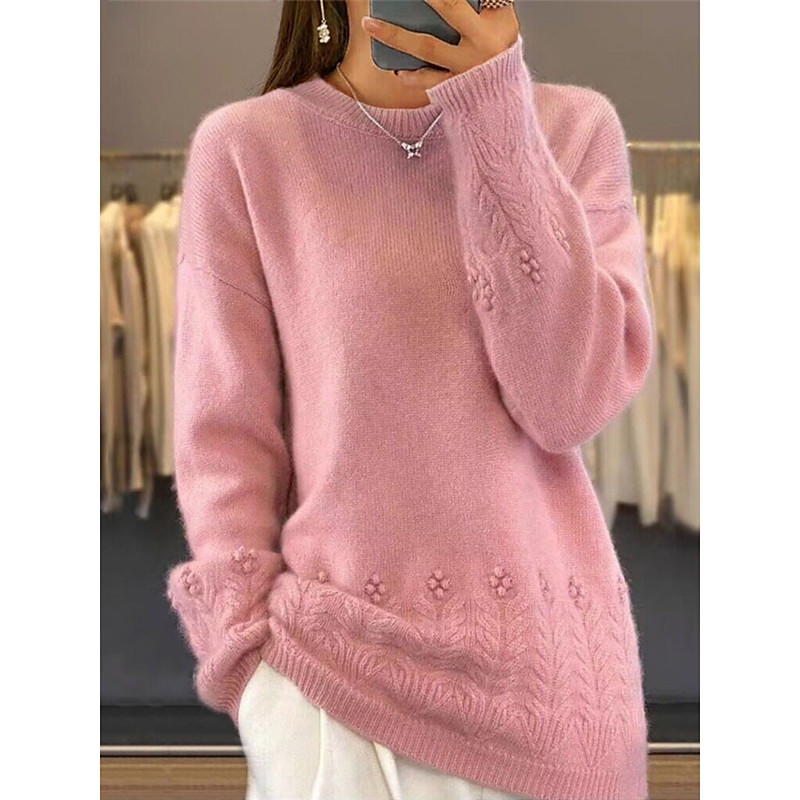 Women's Sweater Pullover Streetwear Casual Solid Color Crew Neck Knitted Long Sleeve Regular Tops Knit Daily Holiday Going out Pink Wine Fall Winter