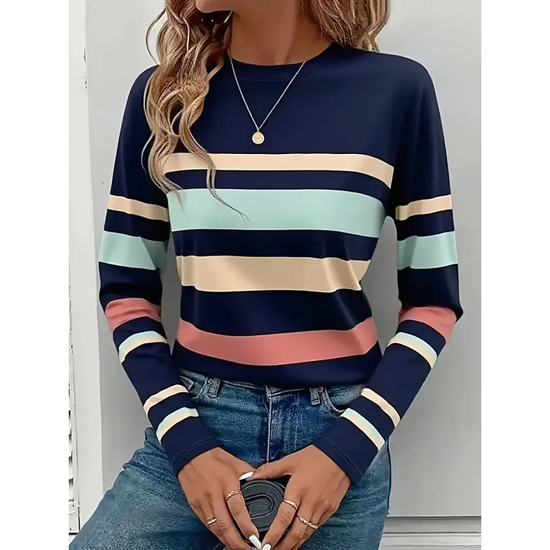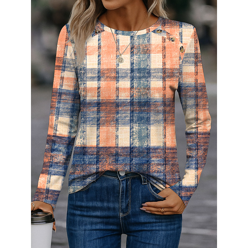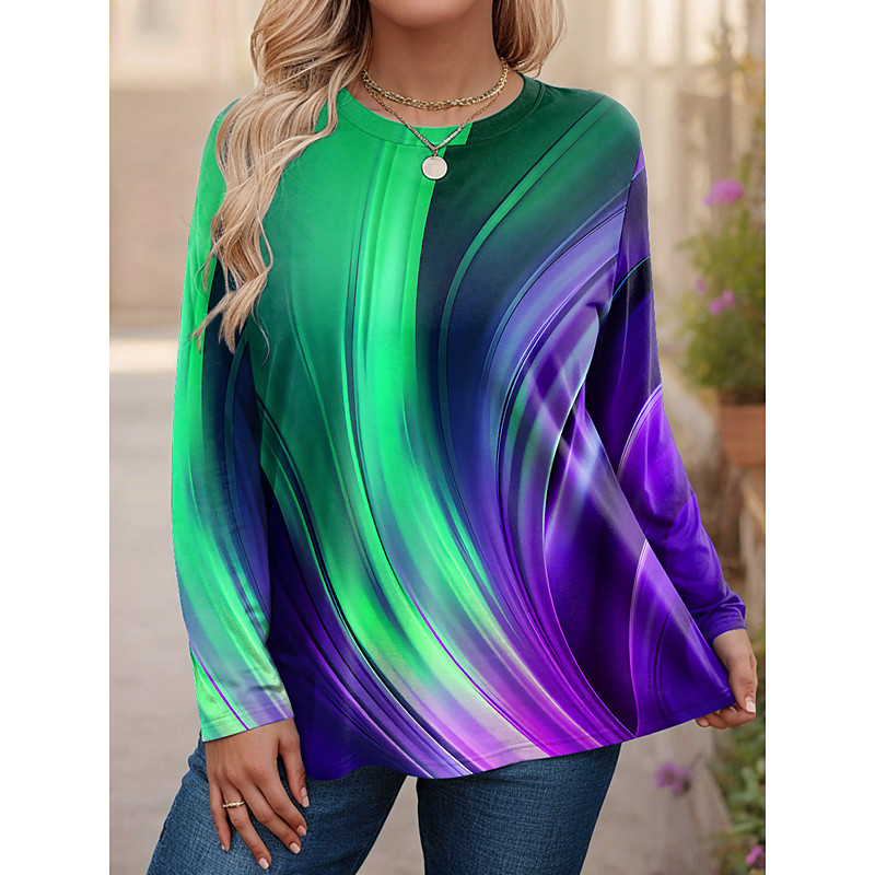Women's T shirt Crew Neck Long Sleeve Tunic Color Gradient Casual Round Neck Regular Tops Daily Weekend Print Red Blue Purple Gray Spring Fall