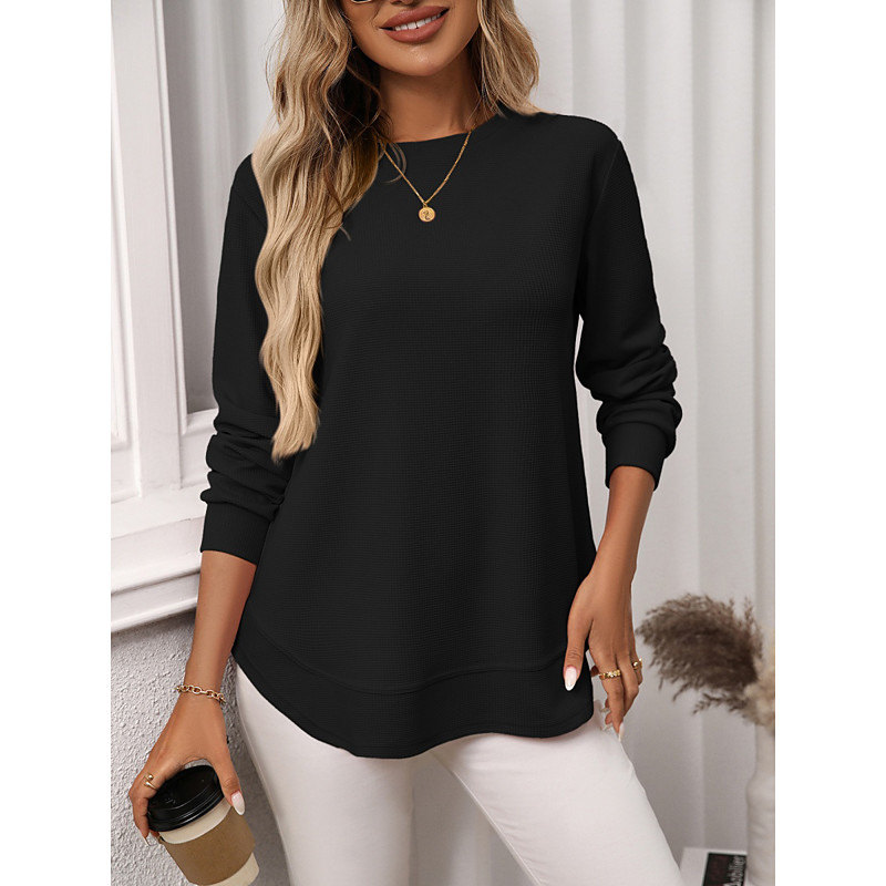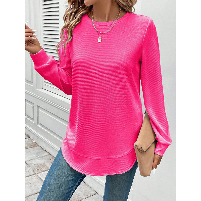 Women's T Shirt Plain Casual Long Sleeve Crew Neck Regular Tops Daily Going out Weekend Black Pink Navy Blue Dark Green Brown Fall