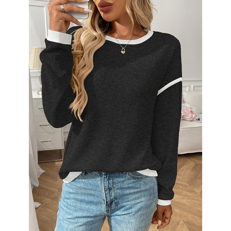 Women's Sweater Casual Soft Solid Color Ribbed Crew Neck Knitted Long Sleeve Regular Tops Knit Outdoor Daily Weekend Black White Fall Winter