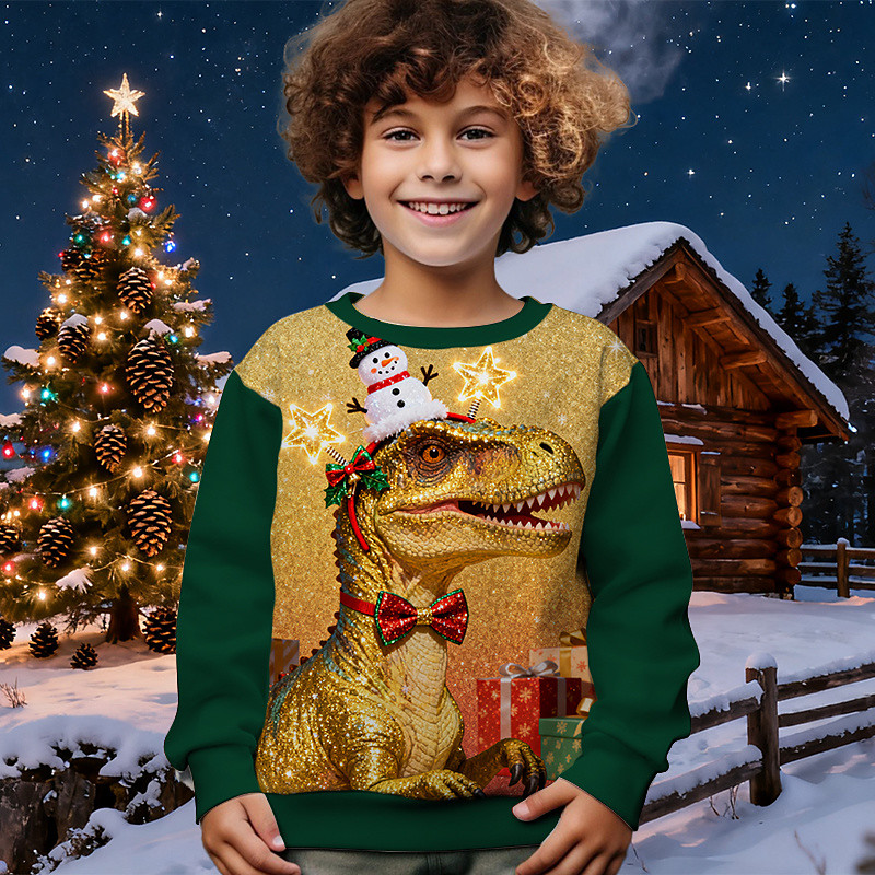 Christmas Girls' 3D Deer T shirt Tee Long Sleeve Spring Fall Fashion Basic Kids 4-12 Years Crew Neck Outdoor Casual Daily Regular Fit