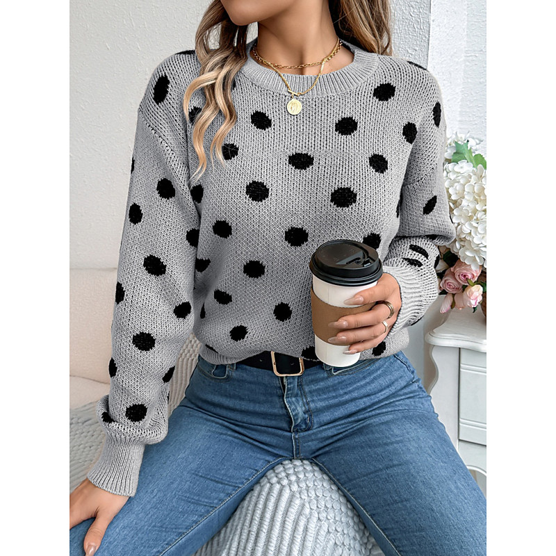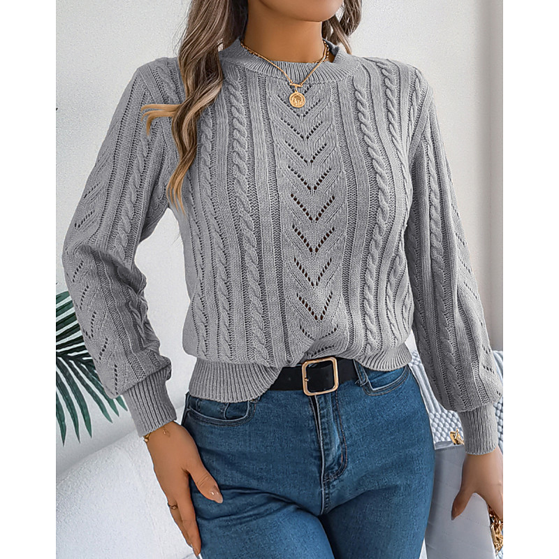 Women's Sweater Cardigan Elegant Fashion Cute Solid Color Crew Neck Knitted Print Long Sleeve Regular Tops Knit Outdoor Daily Holiday Black White Fall Winter