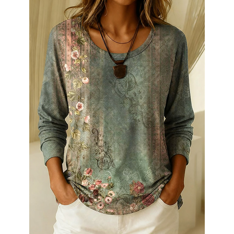 Women's Pullover Sweatshirt Floral Casual Long Sleeve Crew Neck Regular Tops Street Dailywear Casual Blue Spring Fall Winter