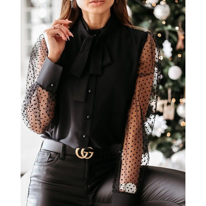 Women's Shirt Blouse Plain Active Stylish Long Sleeve Crew Neck Regular Tops Daily Going out Patchwork Mesh Buttons Black White Fall Winter