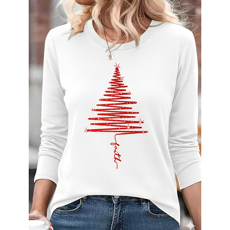 Women's T Shirt Letter Casual Long Sleeve Crew Neck Regular Tops Daily Print Pink Blue Green Gray Spring Fall
